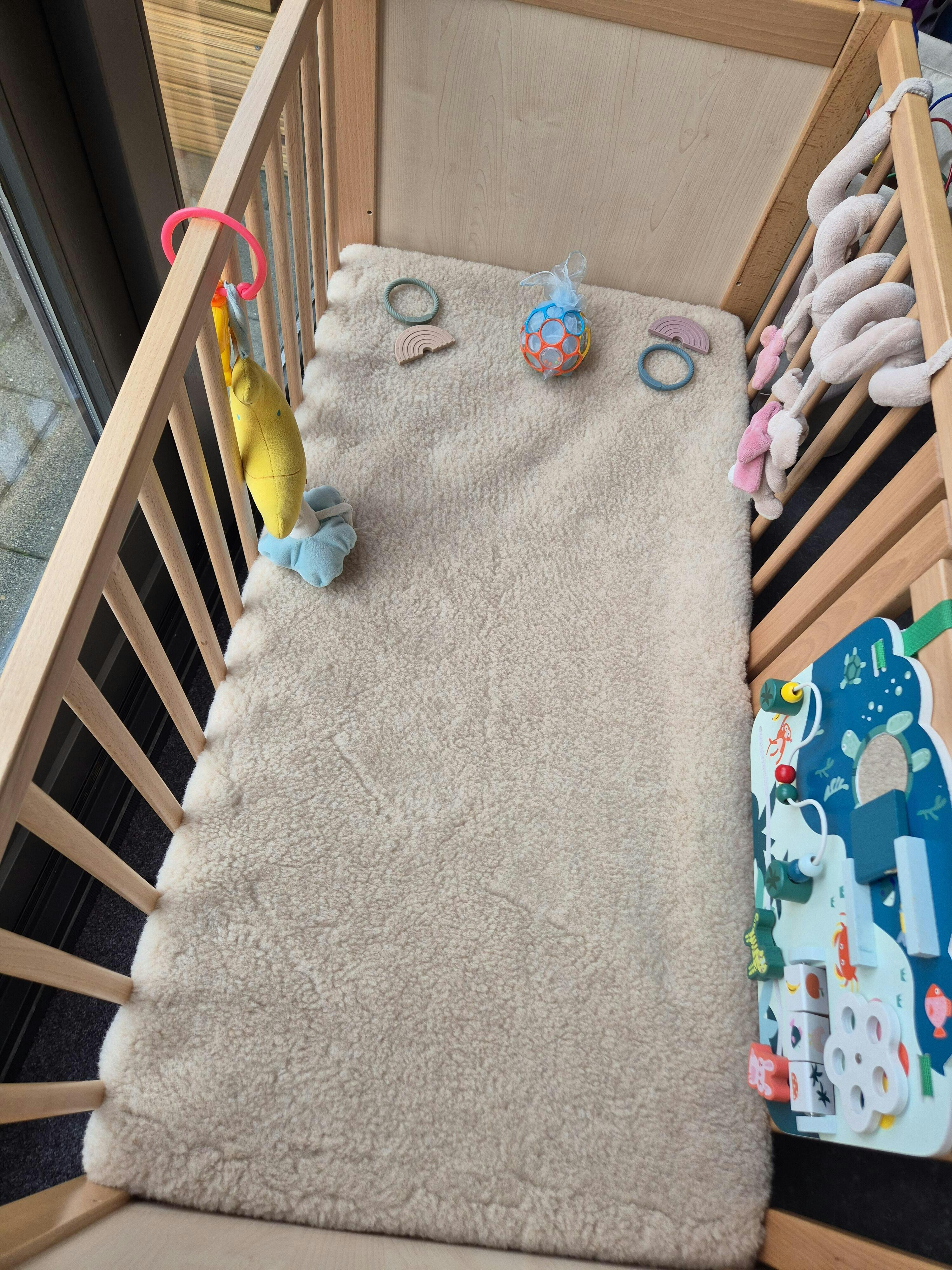 Ons wollen hoeslaken biedt de perfecte slaapomgeving voor je baby. De zachte, ademende stof zorgt ervoor dat je baby comfortabel en rustig kan slapen, zonder dat het te warm wordt.